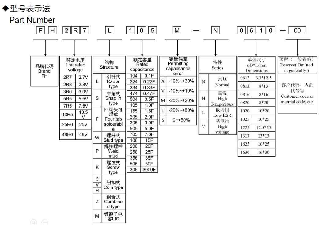 風華高科圓柱型超級電容器型號命名規(guī)則: