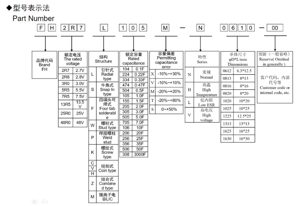 風(fēng)華高科高溫系列圓柱型超級(jí)電容器型號(hào)命名規(guī)則: