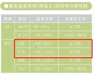 X5R電容的電容值變化范圍為±15%,而X7R電容的電容值變化范圍也為±15%。兩者在電容值的穩定性上沒有什么顯著的區別。