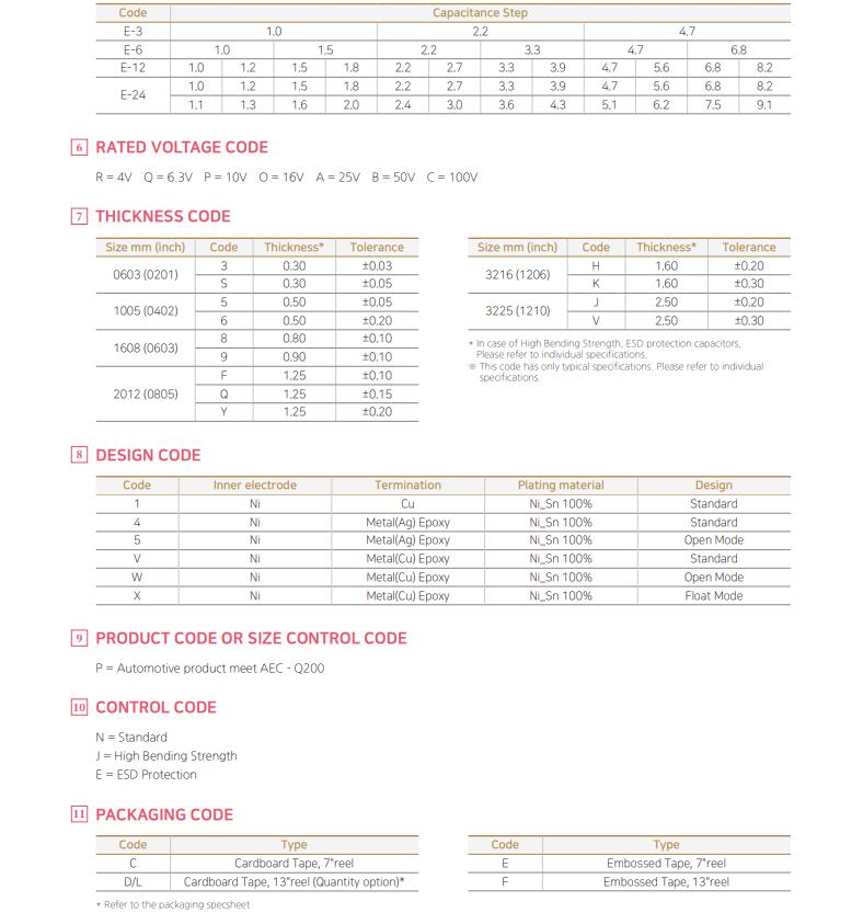 三星貼片車規電容料號命名規則對照表: