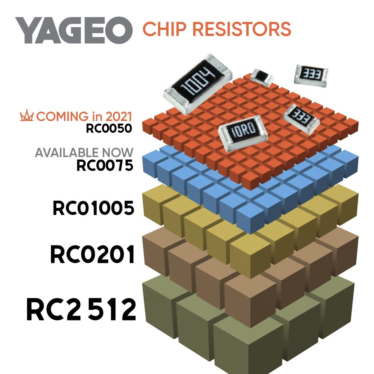 目前RC系列厚膜晶片電阻提供完整的尺寸- 從0075, 01005, 0201到 2512,完全滿足客戶各種不同的應(yīng)用需求,達到高效能和多功能的目的。為迎接5G新科技時代的來臨,國巨擴大資本支出投入RC0075晶片電阻,除了是在高階通訊電子市場的超前布署外,也預(yù)告將于2021年領(lǐng)先業(yè)界完成開發(fā)下一代尺寸的晶片電阻RC0050 (M0201),持續(xù)展現(xiàn)國巨堅強的研發(fā)技術(shù)能力。