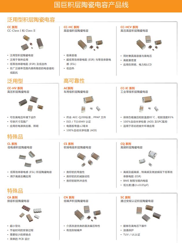 YAGEO國巨多層陶瓷電容器主要包括:普通陶瓷電容器,高值陶瓷電容器,串聯(lián)電容器,高壓電容器,中壓電容器,高頻電容器,微波電容器,低電感電容器,X2Y®電容器濾波器,陶瓷層電涌保護器等。