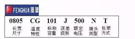 如圖所示:風華貼片電容型號0805 CG 101 J 500 N T