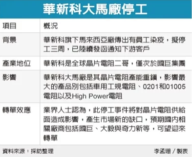 據(jù)報(bào)道,華新科已通知下游EMS客戶,馬來西亞工廠自23日起已暫停三周。 在此之前,華新科曾將先前加工的一些半成品運(yùn)往臺灣,但數(shù)量并不大。 華新麗華集團(tuán)是華新麗華集團(tuán)旗下主要的被動組件制造商。 它占據(jù)了全球第二大片式電阻器行業(yè)市場,僅次于國巨集團(tuán)。 第三大工廠是大邑,該廠100%在臺灣生產(chǎn)。 業(yè)內(nèi)人士認(rèn)為,在持續(xù)的住房經(jīng)濟(jì)商機(jī)下,片式電阻器的供需相對緊張。 華新科馬來西亞工廠的停產(chǎn)將使市場供應(yīng)更加惡化,下游訂單的浪潮將隨時觸發(fā)。