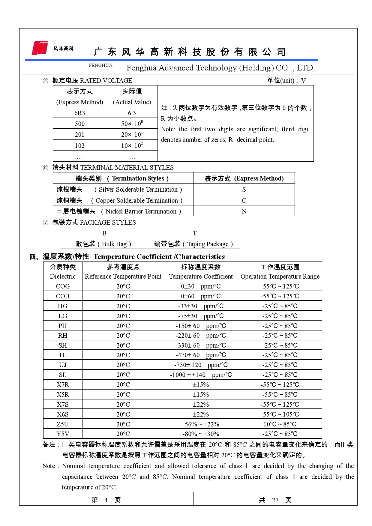 風華貼片電容型號對照表: