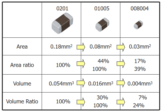 太陽誘電推出超小型電容(以008004英寸的產(chǎn)品)為例進(jìn)行說明: