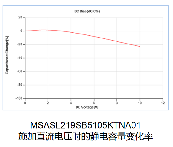 以下是對我們的產品 MSASL219SB5105KTNA01施加直流電壓時的靜電容量變化率。